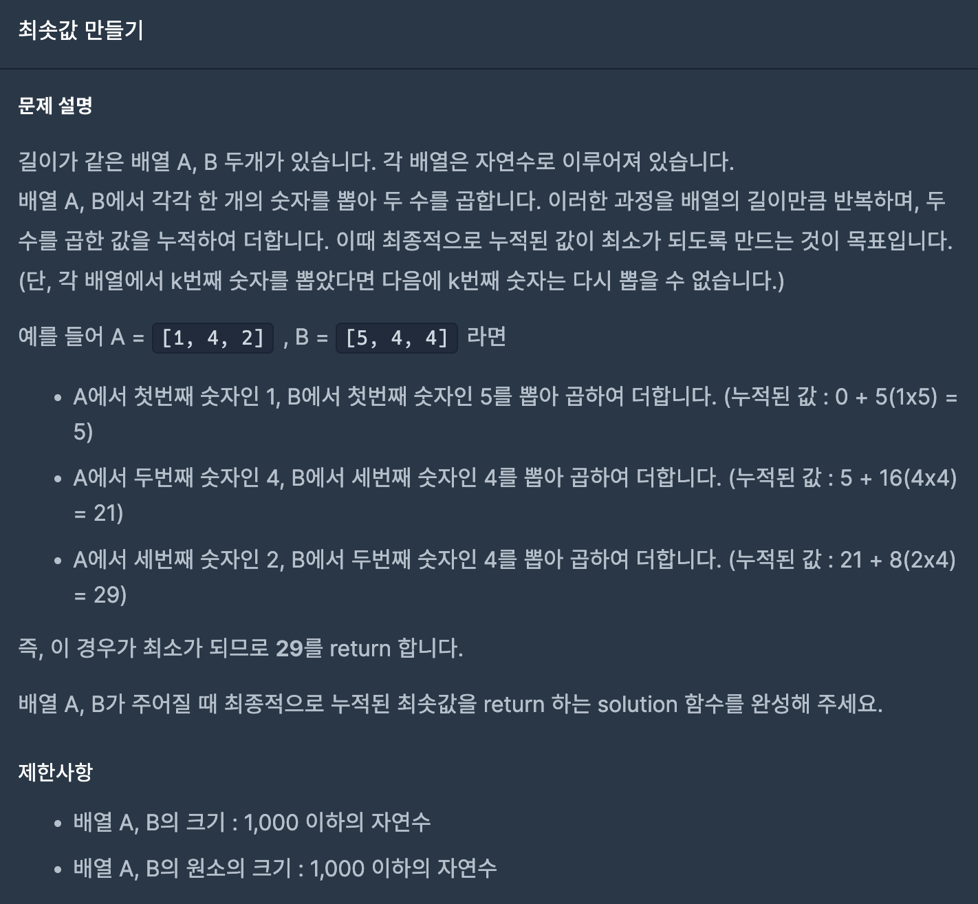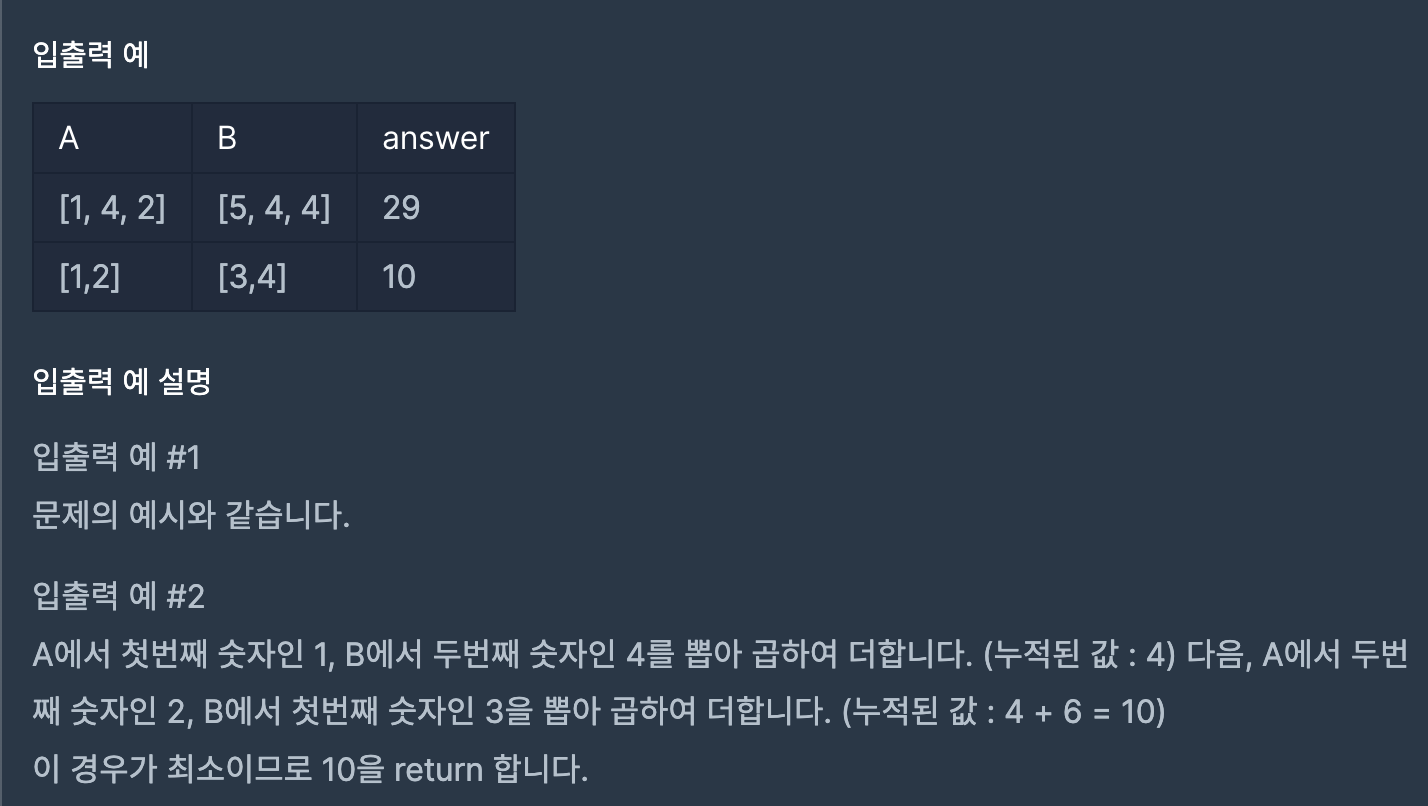 //2. 배열 A에서 최소값과 배열 B에서 최대값을 곱하고 더한다.