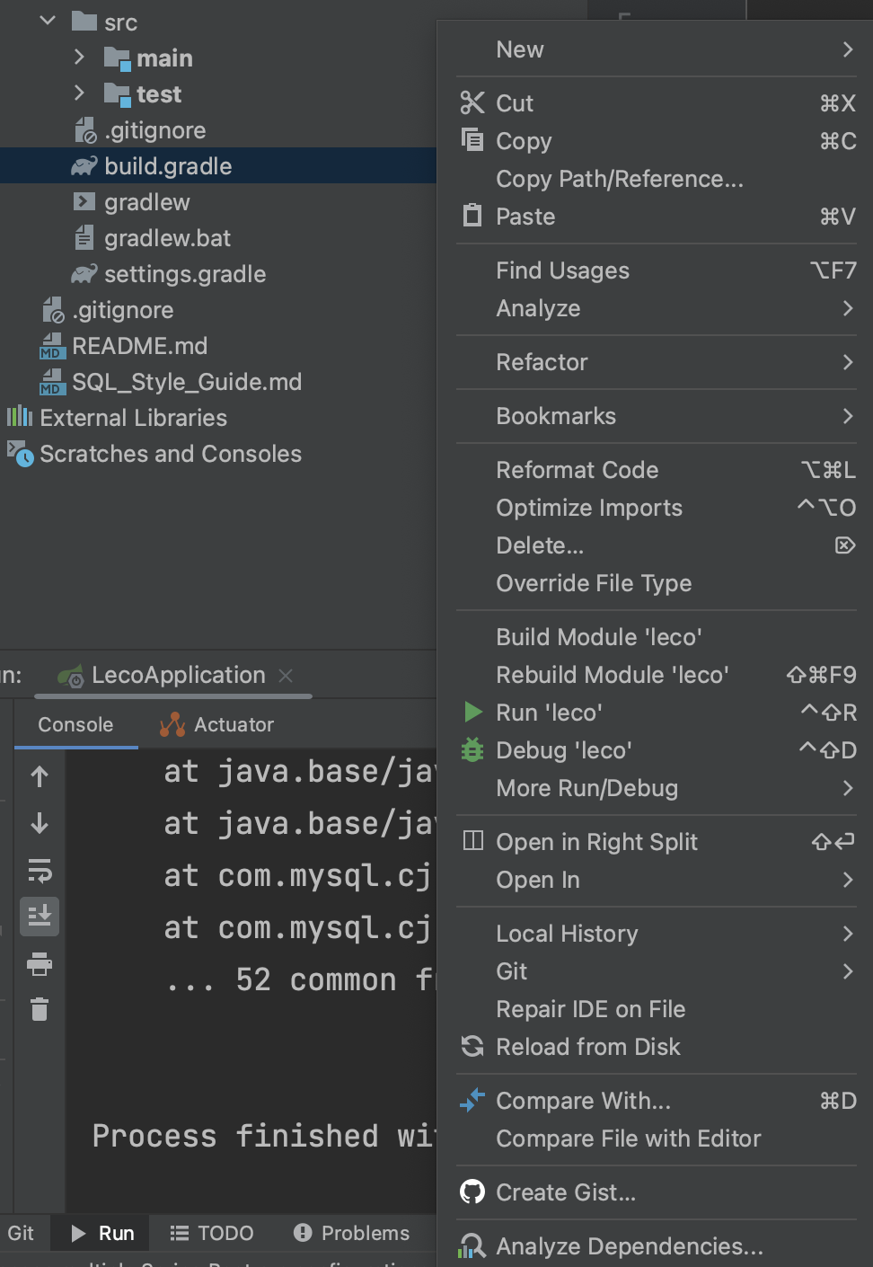 본인은 Link Gradle Project 클릭을 하였으므로 Create Gist위에 해당 메뉴가 보이지 않는다.
