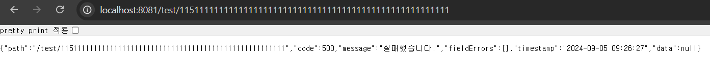 testId를 int의 범위를 넘어서는 숫자를 입력하게 되면 int overflow가 발생하면서 에러가 난다.