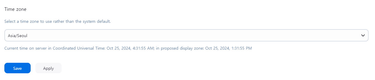 스크롤을 내리면 Time zone에 대한 select box에서 원하는 시간대를 선택하면 된다.