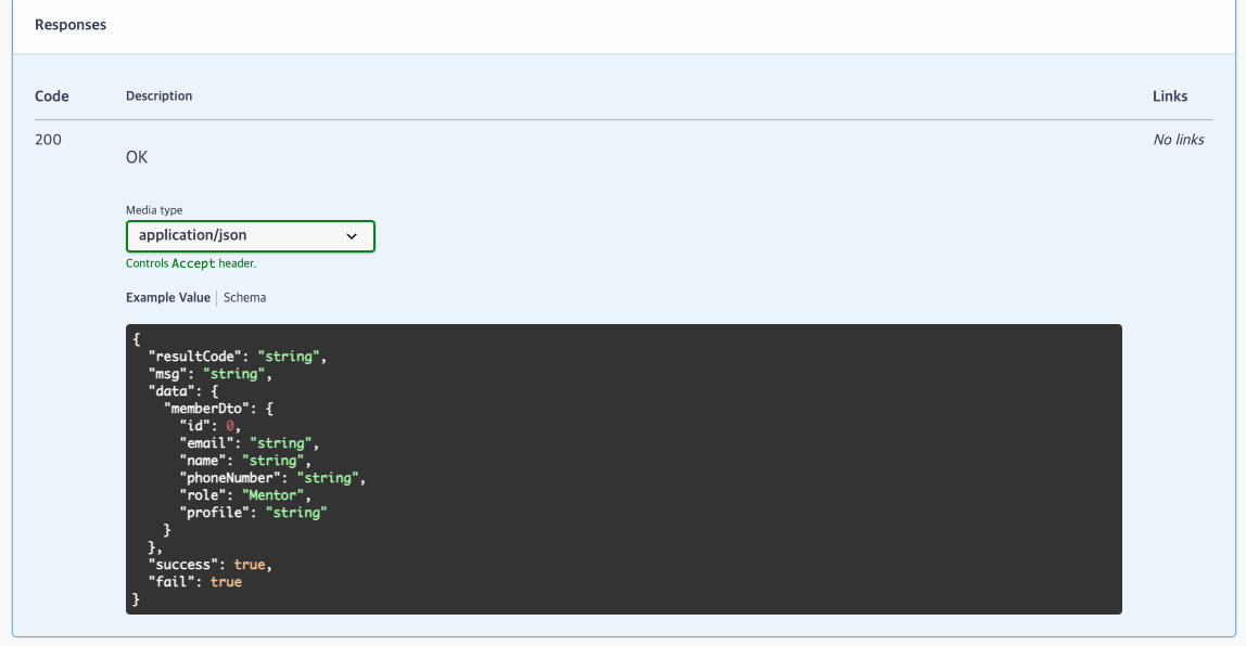 Responses에서 role 값이 Mentor로 나온다.