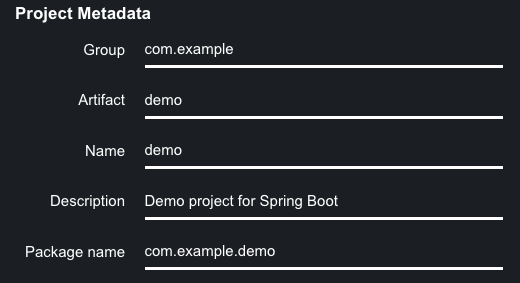 Project Metadata 또한 개발자의 선호에 맞게 이름을 설정하면 된다.